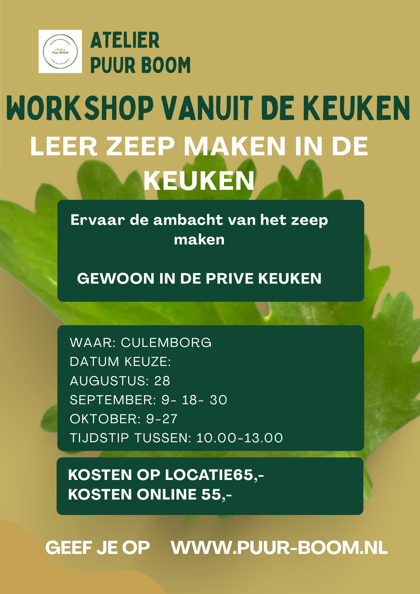 Wil jij ook een zeepworkshop volgen vanuit de prive keuken, dit om te ervaren hoe gaat het in mijn eigen keuken. Meld je nu aan. Deze workshop is ook mogelijk om onine te boeken.